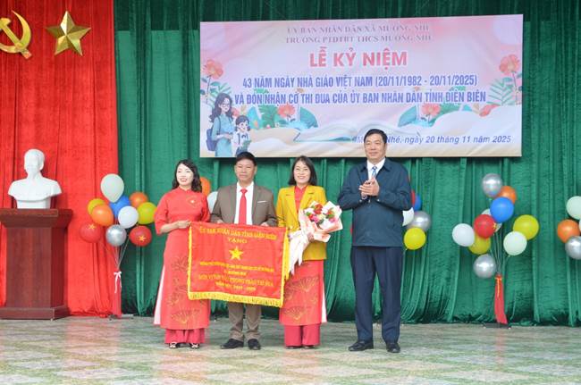 Sáng ngày 20 tháng 11, trong không khí vui tươi hướng về Ngày Nhà giáo Việt Nam, Trường PTDTBT THCS Mường Nhé đã long trọng tổ chức Lễ kỷ niệm 43 năm Ngày Nhà giáo Việt Nam và đón nhận Cờ thi đua xuất sắc của UBND tỉnh Điện Biên. Đ/c Nguyễn Văn Úy, Phó Bí thư Đảng ủy, Chủ tịch UBND xã đến dự và chúc mừng các thầy, cô.
